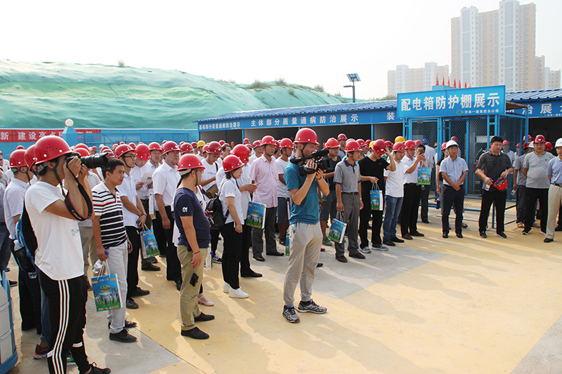 在我公司直屬項目公司主任工程師穆忠翠的引領和講解下,觀摩團一行沿參觀路線先后觀摩了樣板展示區、工地文化墻、生活區、直飲水系統、雨水收集再利用系統、綠色施工標牌、科教樓工程實體、辦公區、職工之家等。現場的精細化管理和標準化設施、花園式辦公區、綠色施工的各項舉措、文化墻等給大家以強烈震撼,所到之處,觀摩人員連連交口稱贊,并紛紛舉起手機、相機留存影像資料。